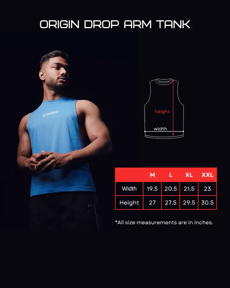 The Origin Drop Arm Tank is built for those who train with intention. Featuring a classic drop arm cut for maximum shoulder freedom, this tank is your go-to for intense sessions in the gym or out.